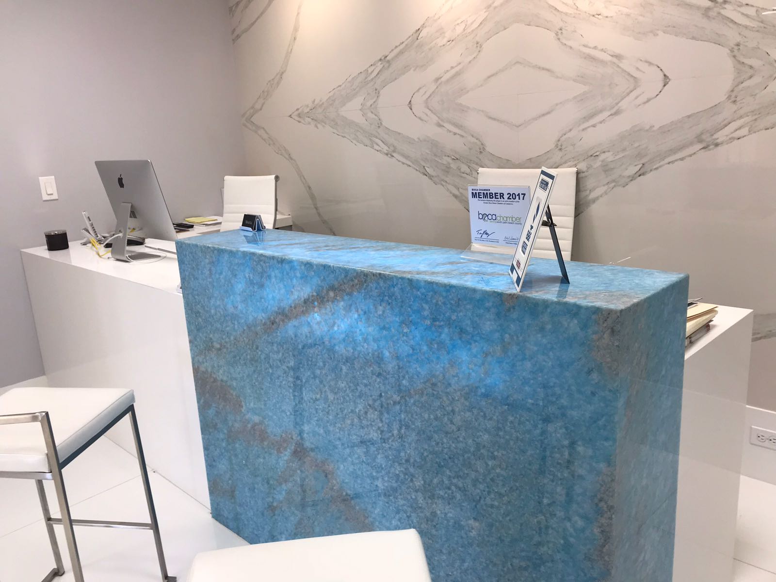 White & Blue Marble Slab - Backlit
